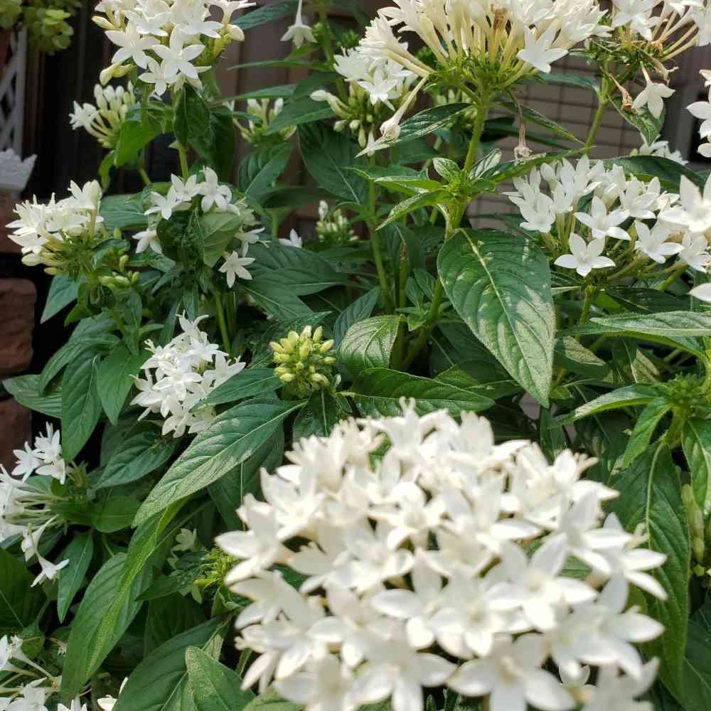 ペンタスのホワイト。この暑さなのに手間いらず。すくすくと育って涼しげです😊暑い🔥☀️この暑さはなんなんでしょう😓