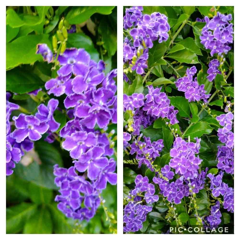 キレイなデュランタ・宝塚💜我が家のタカラジェンヌは、ようやく一枝咲き始めました💖昨秋切り過ぎて〜諦めかけてたから嬉しい😄💕😍✌️