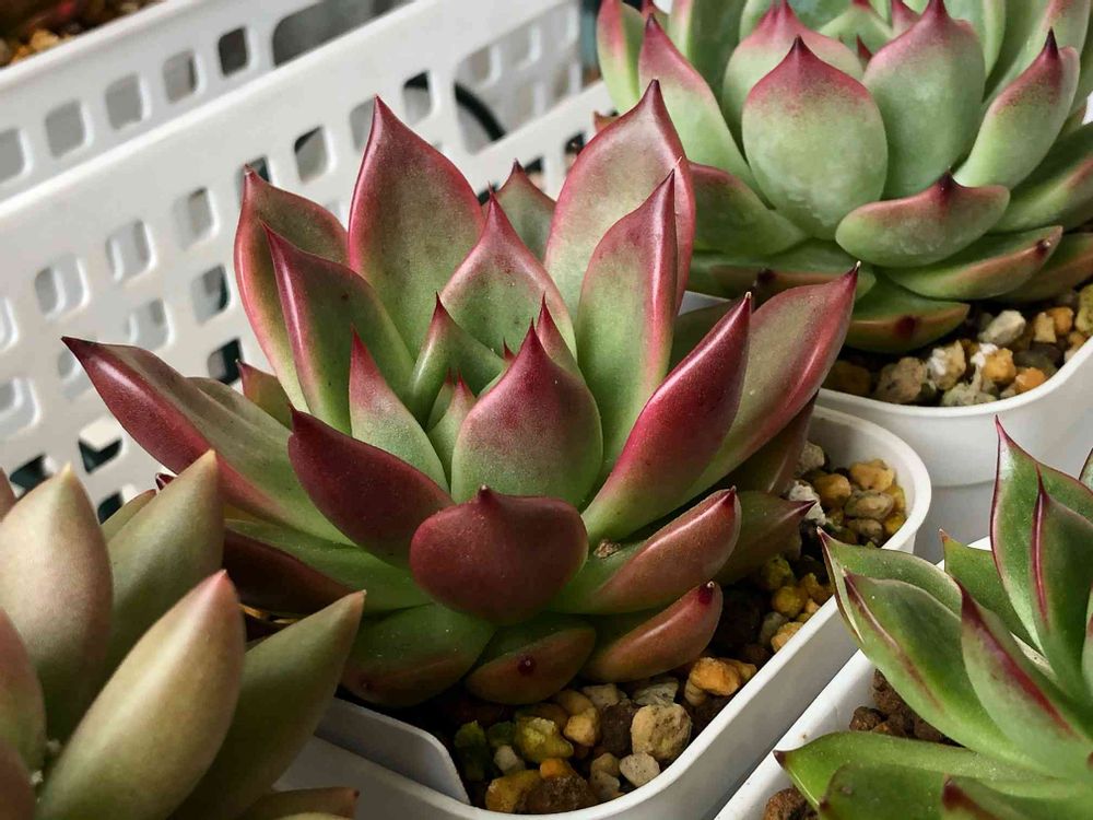 ハニーピンク立派に成長しているのですがふちだけ赤い!あと綺麗な緑です。弦さんの赤色羨ましい。o(^-^)o🌵🎶