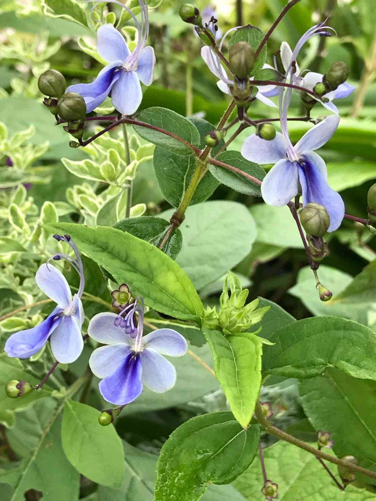 クレロデンドルム ブルーウィング 開花中。冬はコンパクトに切って室内に入れてます。