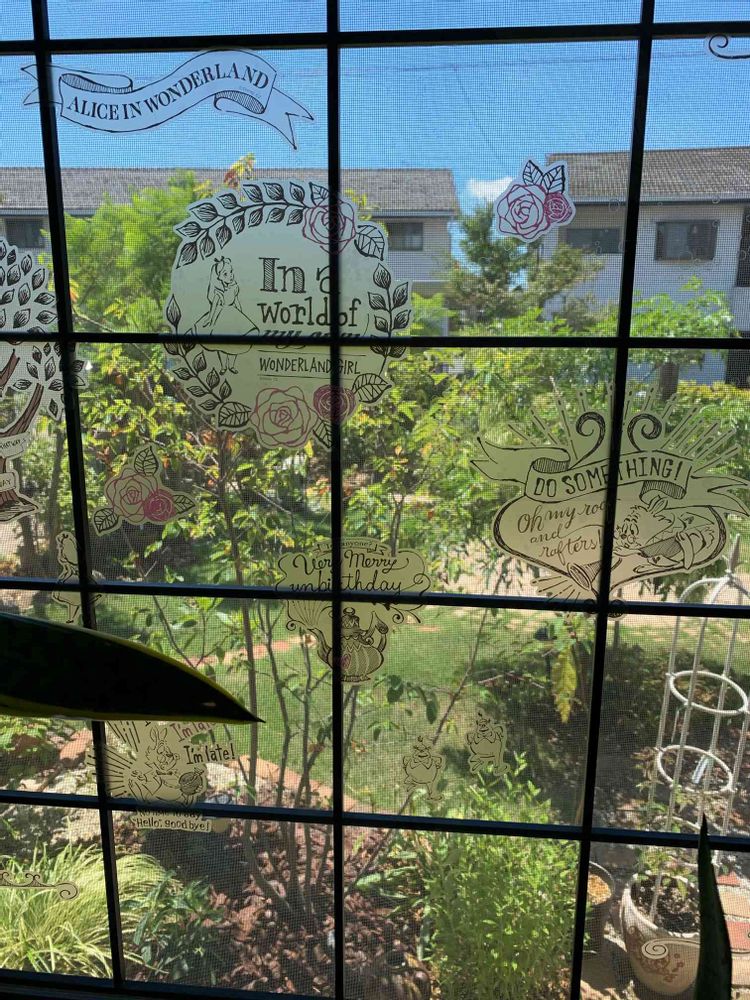 ガラスに飛散防止を兼ねてウォールステッカーをちょっと可愛くなっちゃったかな😉