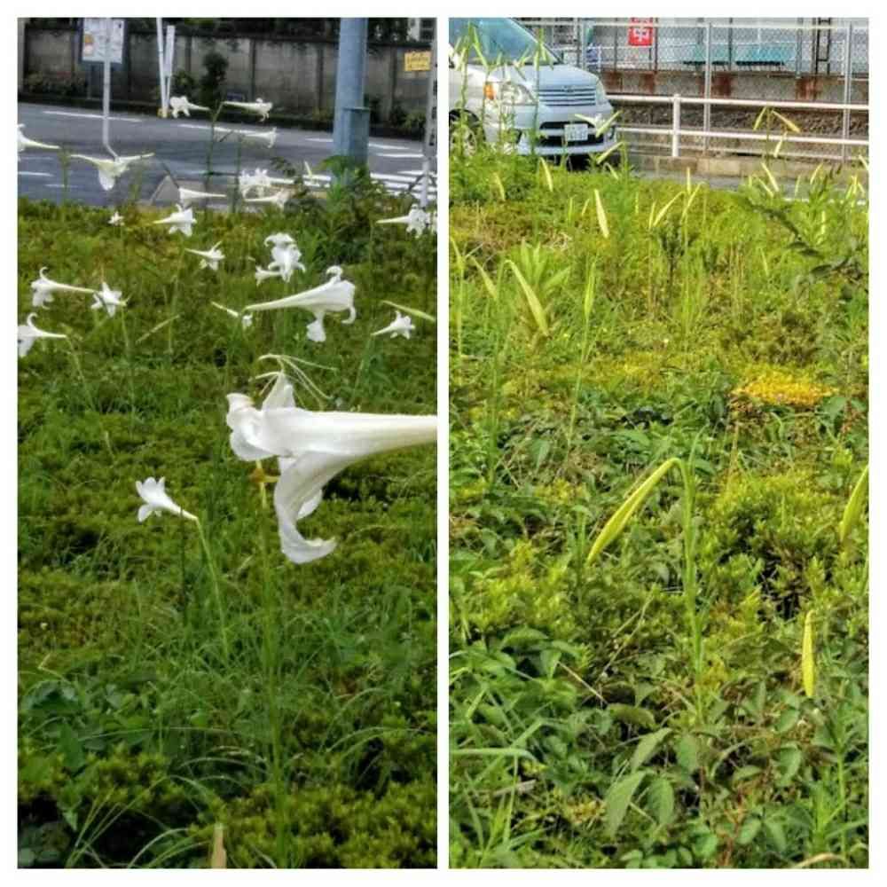 8月8日に、投稿した、駐輪場の傍の、新テッポウユリ。