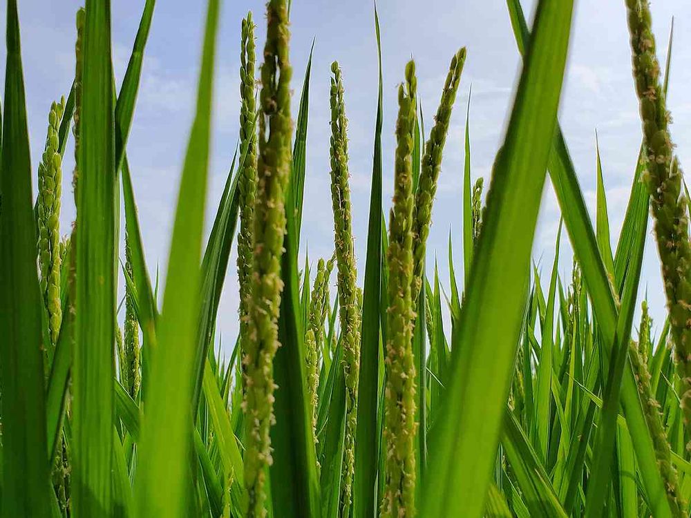 連日の猛暑日に驚いた訳じゃないと思いますが、稲の花が咲いていました。周辺では、穂も出てない田んぼも有るので、品種が違うのかなぁ...(^_^);??