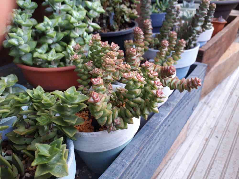 緑色の多肉さんが多いなか 赤く いろんな方向に伸びているところがお気に入り😆