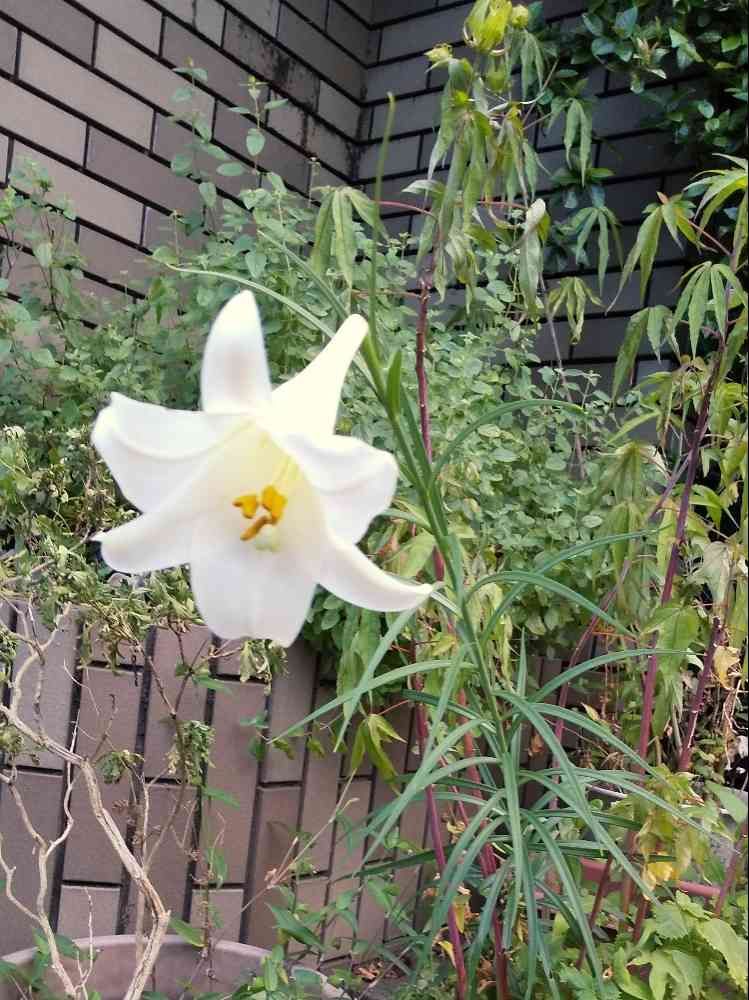新テッポウユリ😃と思ったら花の外側に紅い筋がある~😅