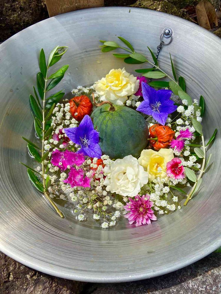 を水盤で冷やします🍉
