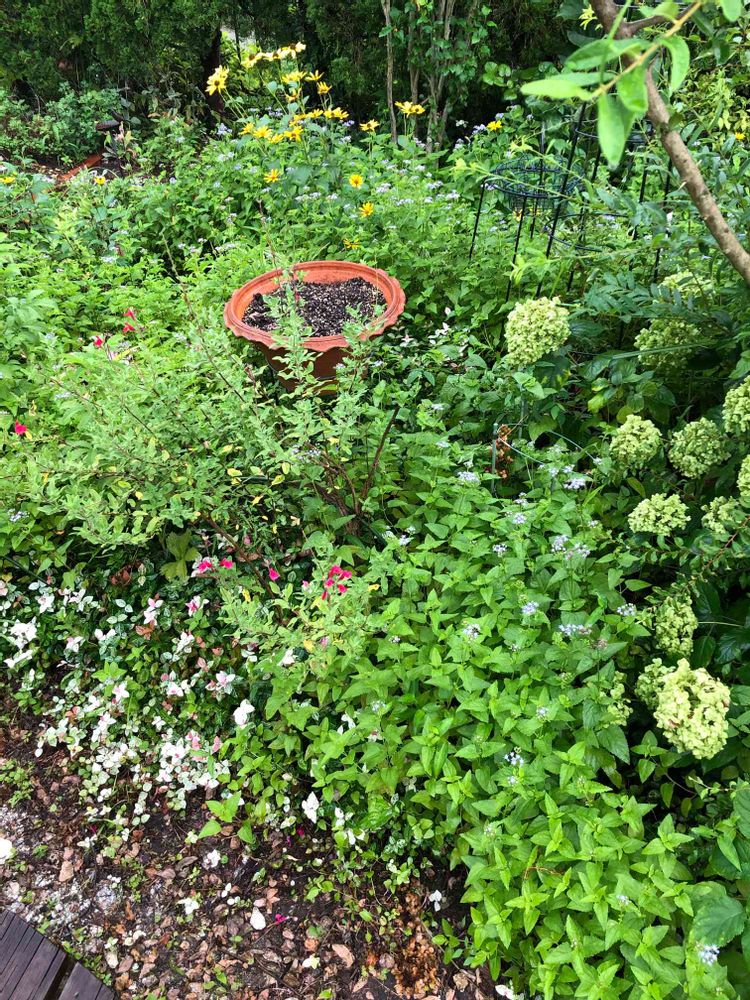 暑いですね。にわか雨で一時休止です。気になる雑草は取ったけれど、東側の庭はモサモサ。