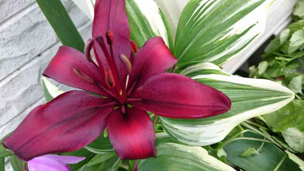 これわ、斑入りのナルコユリの葉っぱとユリが重なってしまっててでもキレイだなぁ~と思って撮りました😊