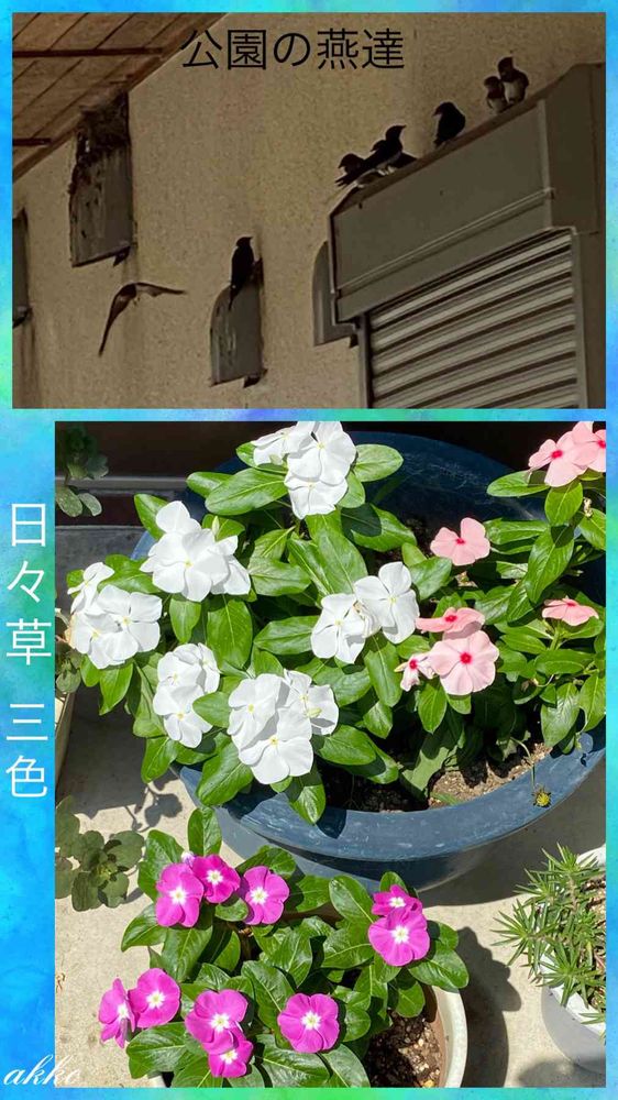 ひみつのアッコちゃんさんのお出かけ先,日々草(にちにちそう),ツバメの親子たちの投稿画像