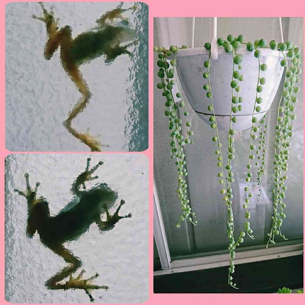 昨日キッチンの窓の外側に、雨蛙🐸チャンがしがみついていたのでパシャ👀📷✨