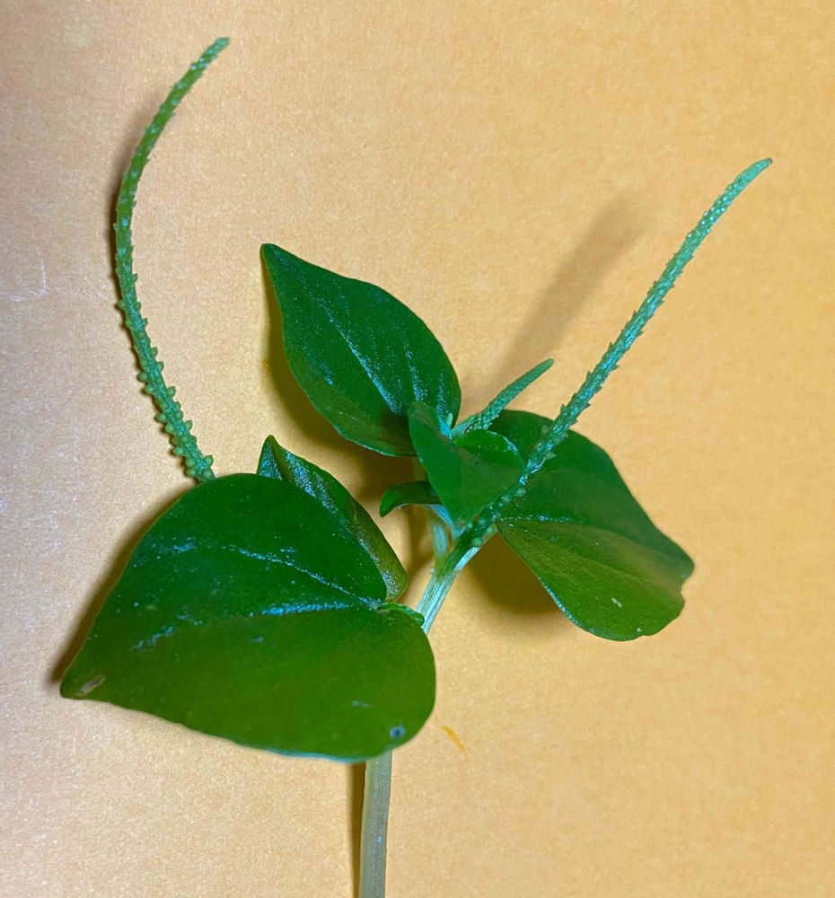 多分、山道の脇にあったと思います。今は我が家の鉢で瑞々しい葉が広がっています。写真の大きい葉が2㎝ぐらい、柔らかい茎です。最近この欄で写真を見かけたのですが、結果を見る前に見失ないました。図鑑も何冊も調べましたがわかりませんでした。