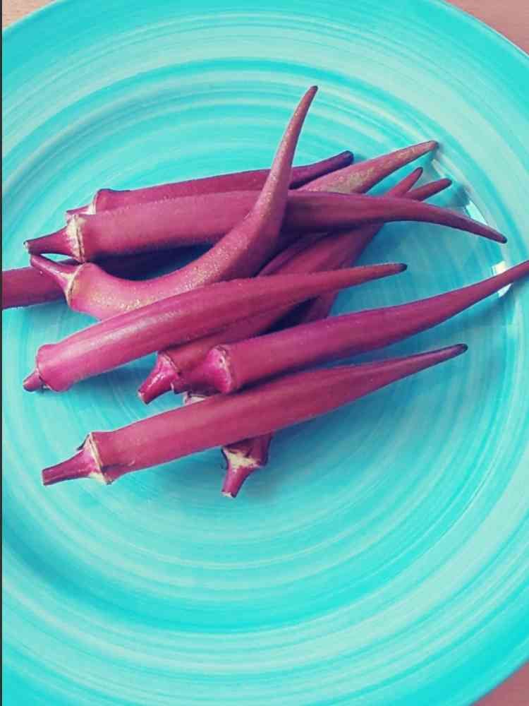 赤いオクラ、毎度、色良く茹でられなくて😅コツとかあるのかな?