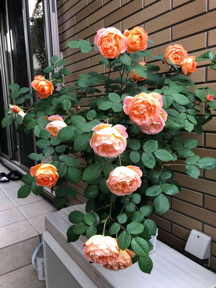 去年の秋、オースチンのバラ園で娘が選んだ🌹。今春たわわに咲いてくれました。