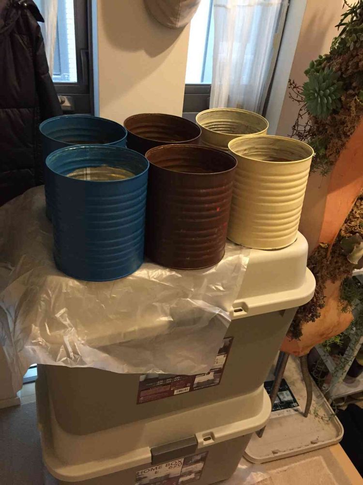 ケースと避難中‼️昨日のお天気を利用してリメ缶作り👍まだ途中…