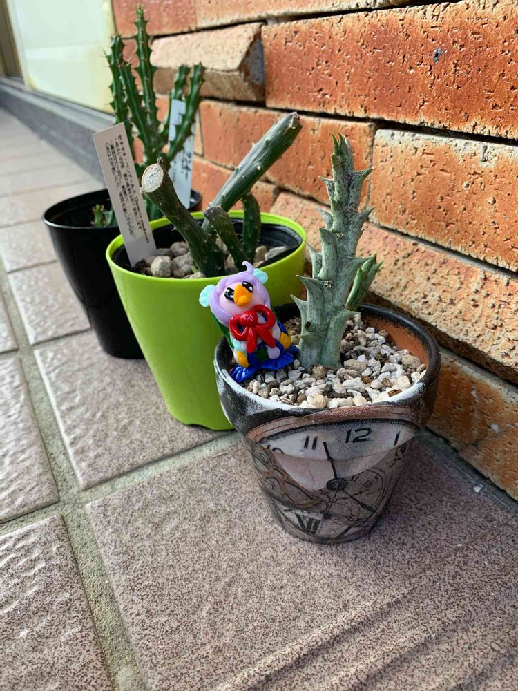 乗っかった、ほーちゃんさん作のリメ鉢に