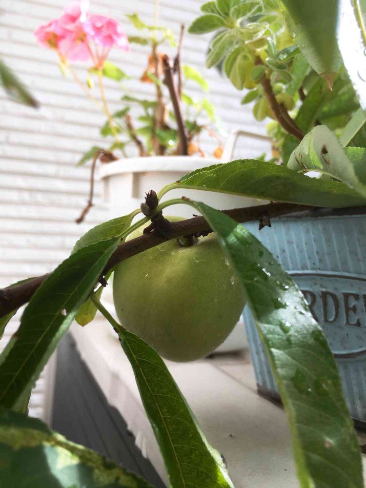 鉢植えの枝垂れ花桃に実が付きました🍑✨