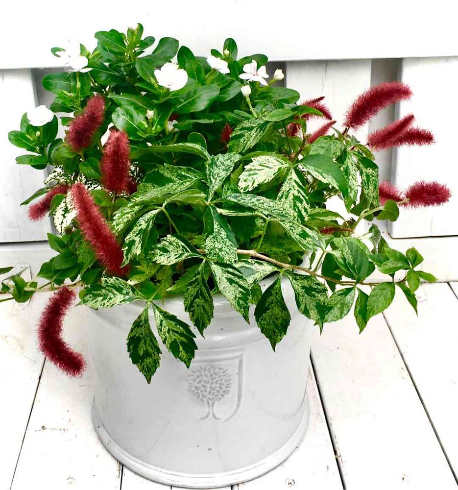 白のプランターにキャッツテールがアクセントになったシンプルな寄せ植えです❤︎