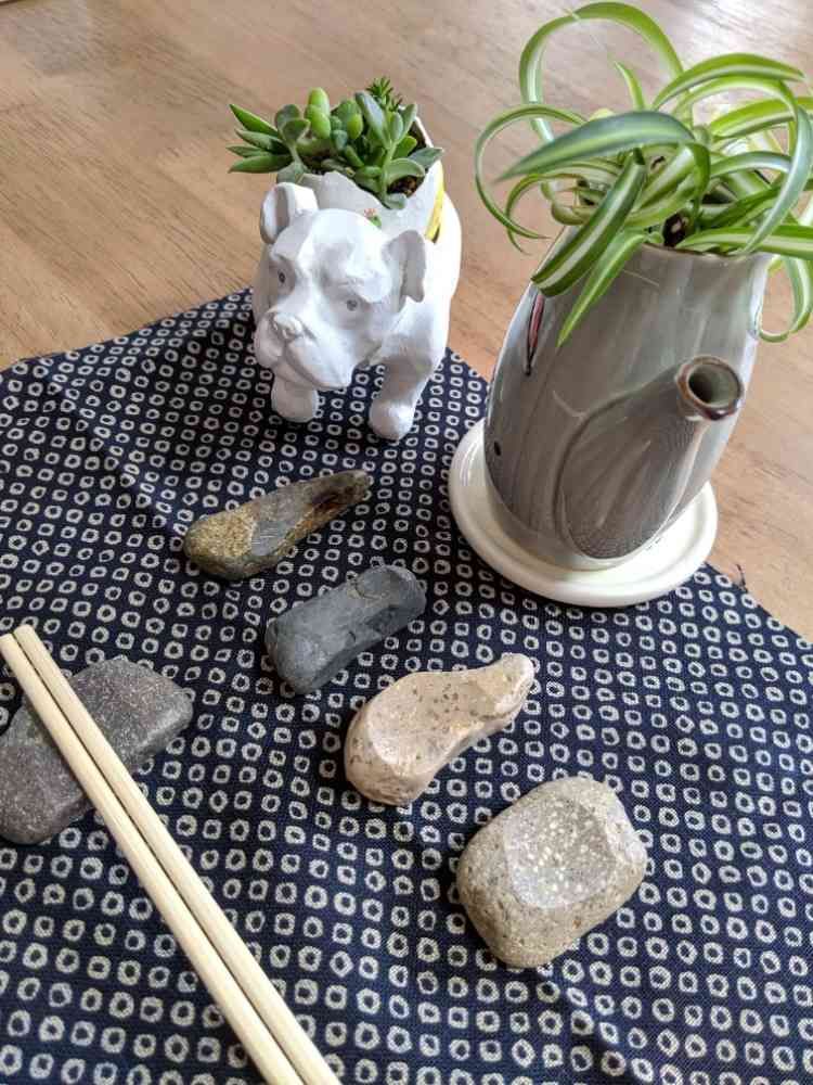 家の近くの川の河原の石を加工した箸置きです