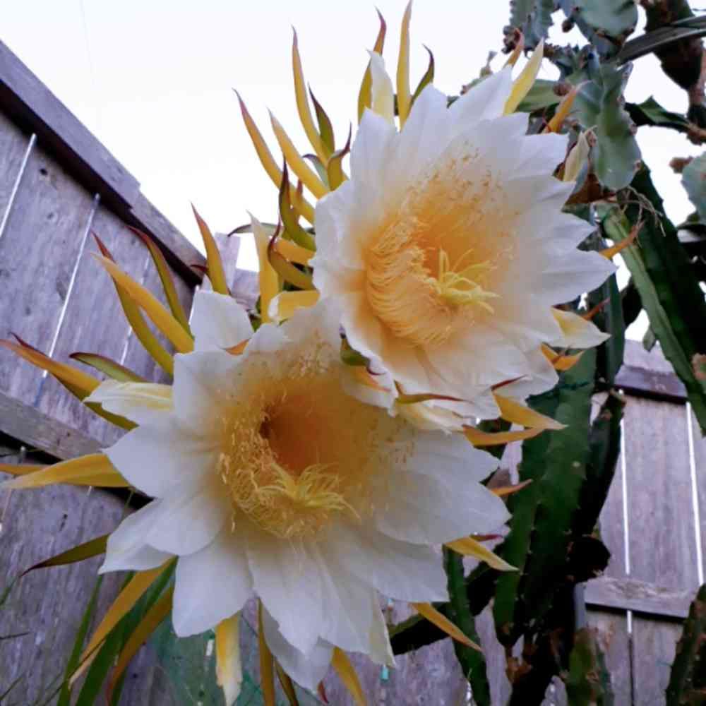 ドラゴンフルーツのお花、👀力強く咲いて素敵ですね~‼️と言う事は実もつき食べられる‼️なんと贅沢🎶