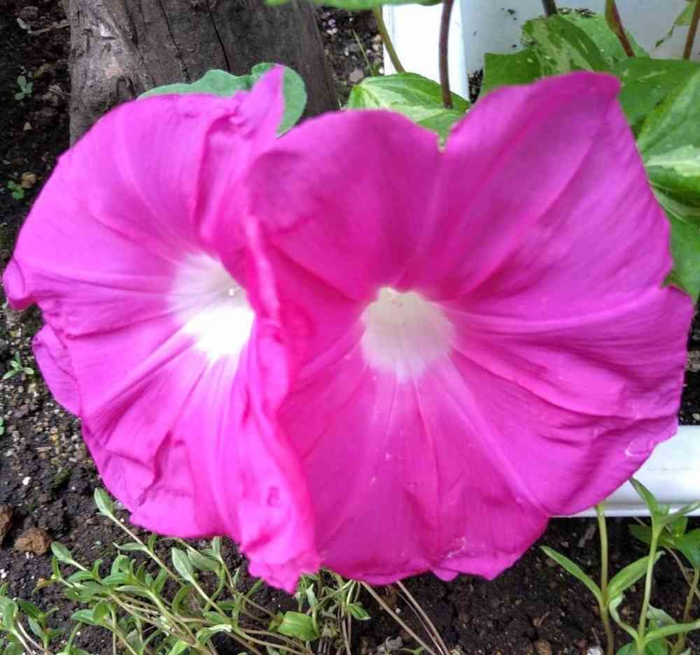 ピンクの朝顔の花、二つ並んで可愛いです💕🎶