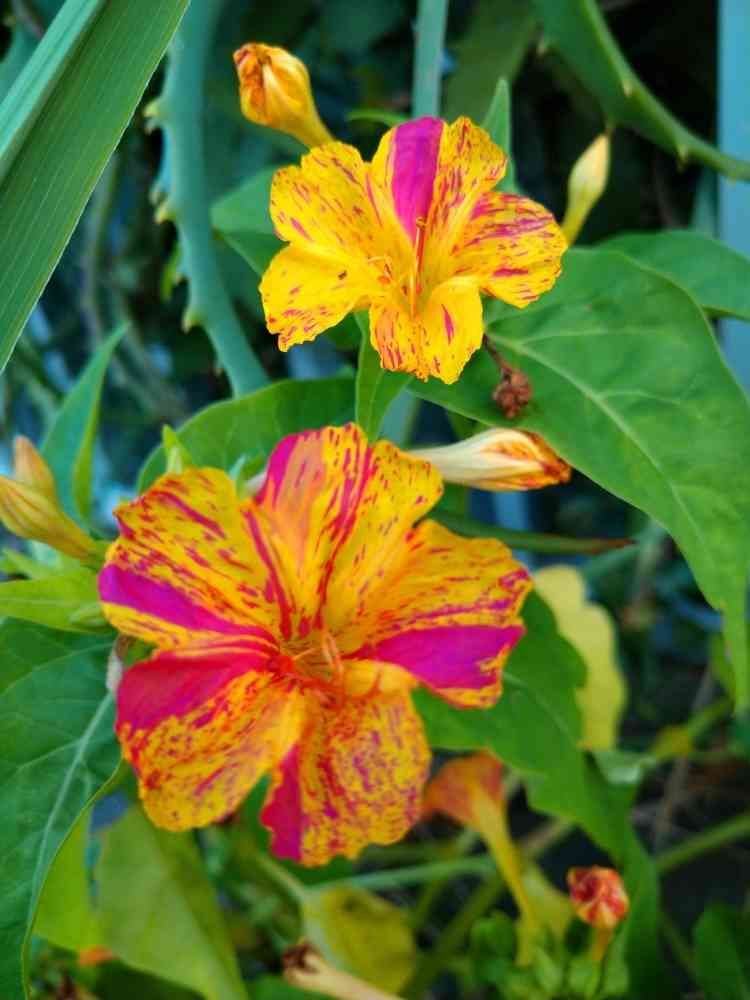 素晴らしく見事な混色のオシロイバナですね!❤️🧡💛❤️🧡💛❤️🧡💛