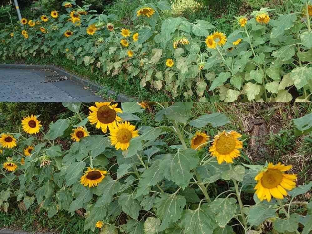 道沿いにズラ〜ッとひまわりが並んで咲く姿は楽しいです🌻🌻🌻