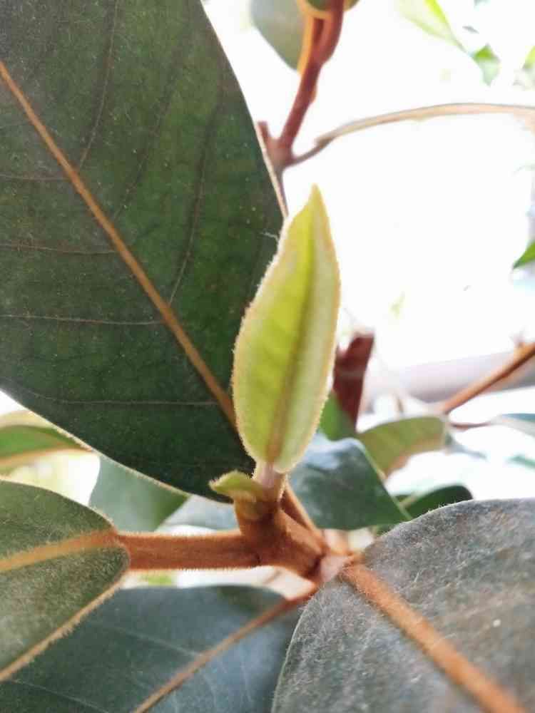 いつのまにか、フィカスベルベットの新芽が出ていました。