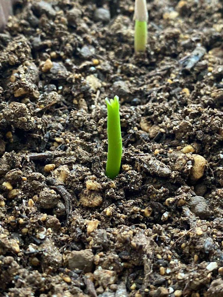 子葉がちぎれてしまった苗ですが、真ん中から少し伸びてきている!