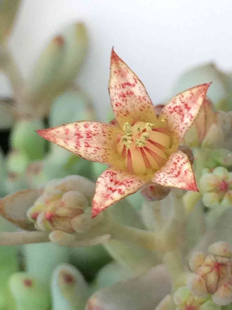 そうなの! 多肉ちゃんの花の色にしては地味よね😅
