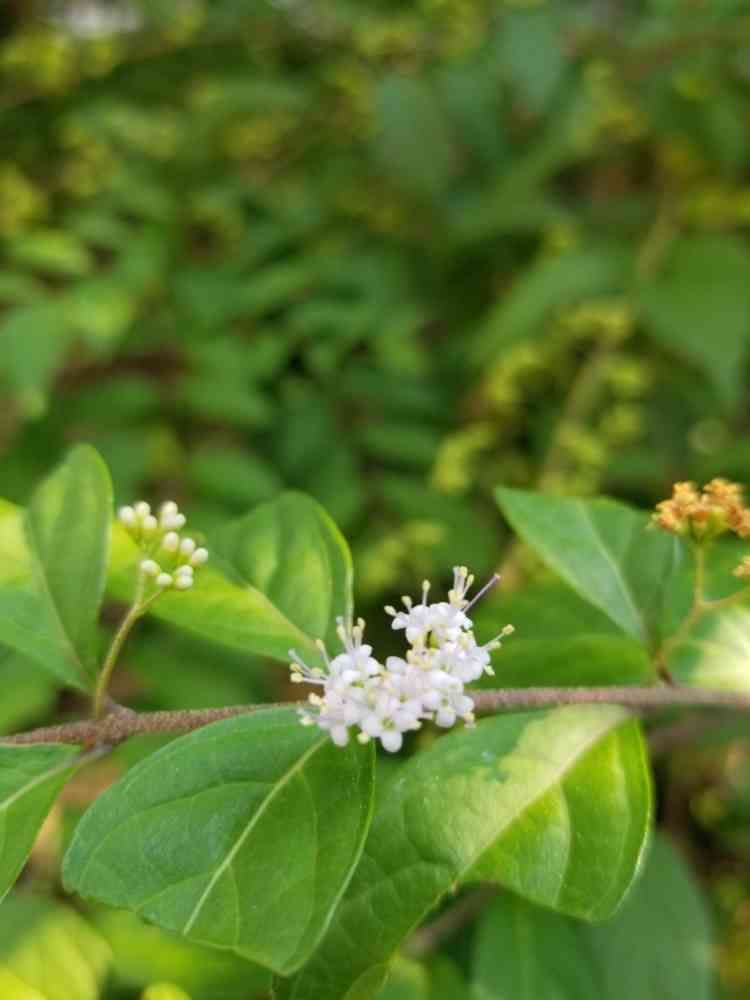 わが家のの紫式部で初めて花を見つけました。紫の実しか実際に見たことが無かったので新鮮でした。💜