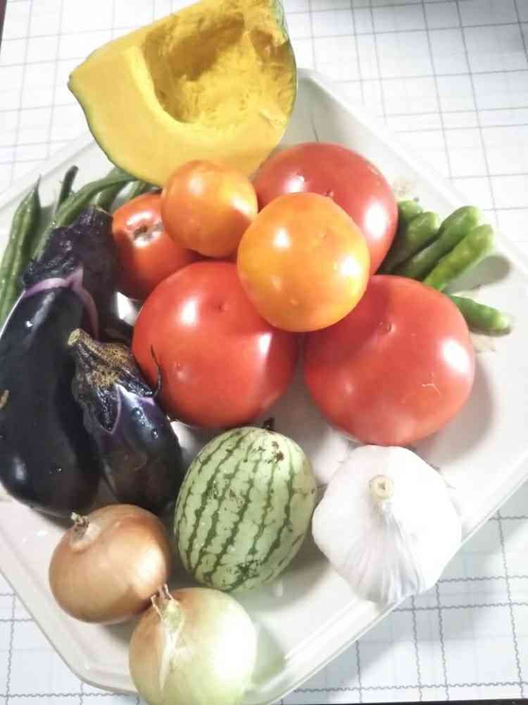 農園の野菜とベランダで育てた小振りの凛々子で夏野菜カレーを作りました。