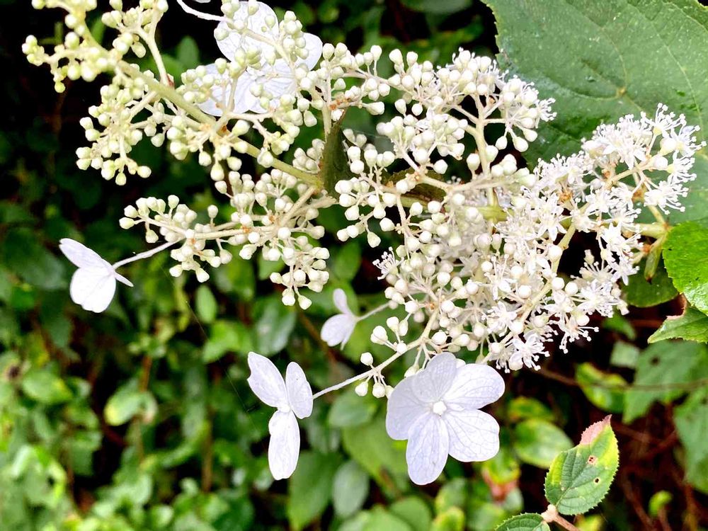 山道に咲いていたノリウツギの花、白いガクがとても綺麗でした。