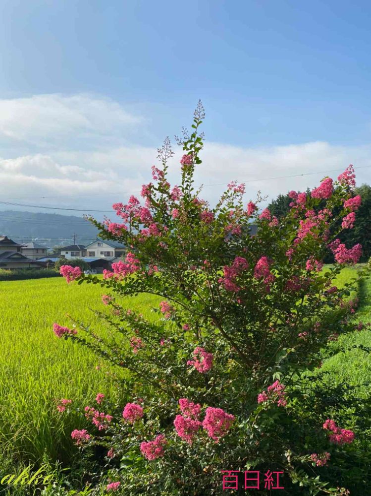 コシヒカリの田んぼ✨🎶と百日紅🌸のショット📸