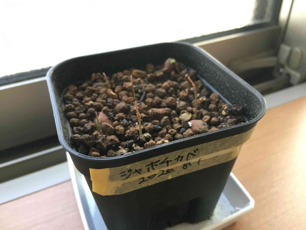 ジャボチカバの実を頂いて食べた後、試しに種まきしました。ヒョロっと芽を出しましたが、これが実を付けるまで成長するには何年かかるのかな。