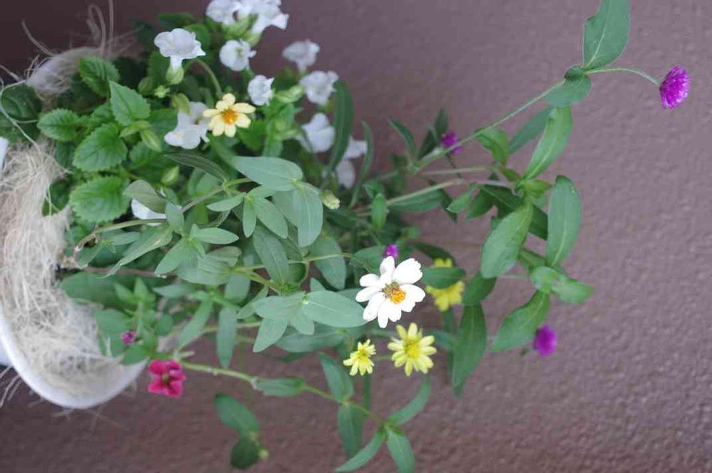 混色植えジニアがすべての色開花しました。後はペチュニアがもっと広がってくれれば