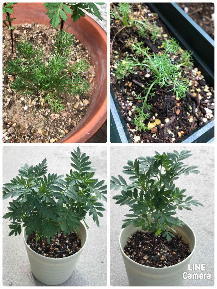 マリーゴールドは黄色のお花が咲き出してます😅 残して置いた種でリベンジしました💪
