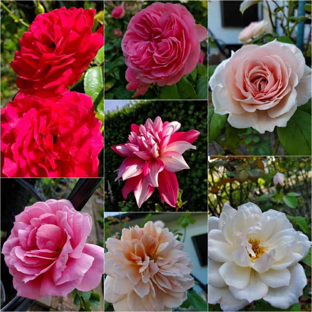 真ん中はダリア 真っ赤だったりマダラだったりで 本当の色は(赤ではなかった!)何色でしたっけ?判らなくなりました🤭💦
