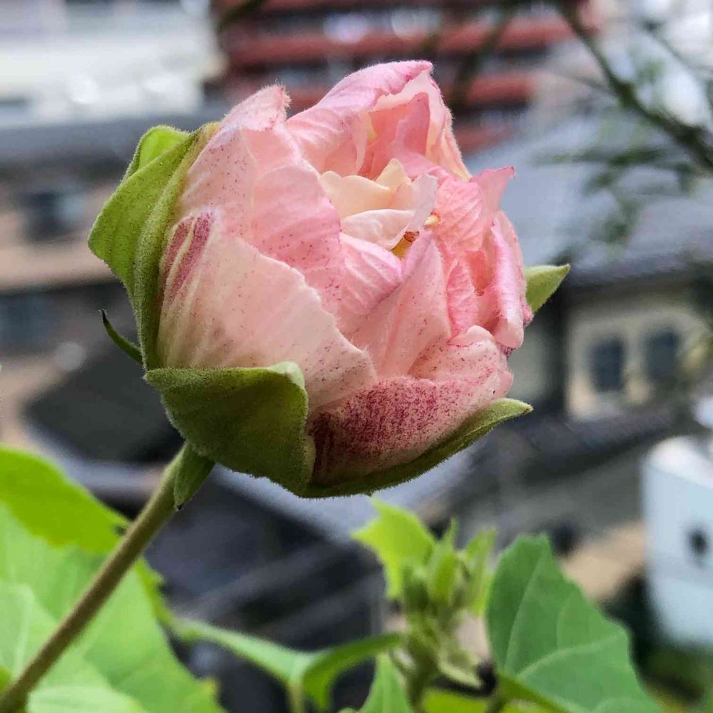 酔芙蓉の一番花がまもなく開花
