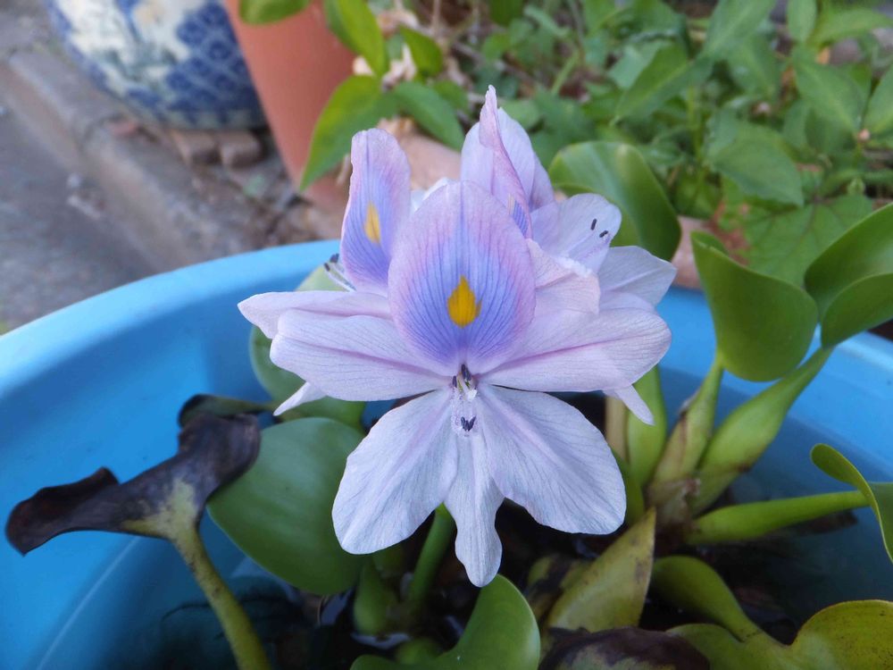 朝の通勤途中。 再度「ホテイアオイ」の綺麗なお花に出会えました。 パチリ