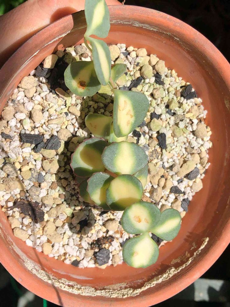 この子の親から分けてもらったのに、前回のミセバヤは斑なし、ピンクの縁なしでした。