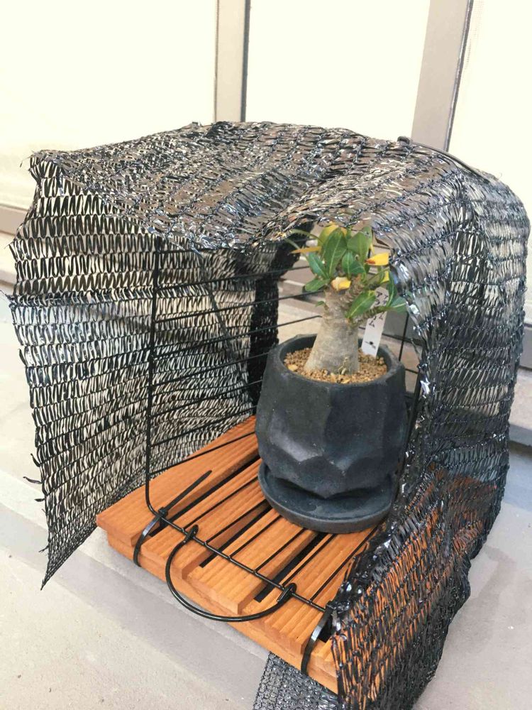 アデニウム以外遮光が必要そうな植物がないし、洗濯物干す時の事とか、室外機の位置との兼ね合いとか、台風の日の事とか色々検討した結果…すっごくミニマムになりました…