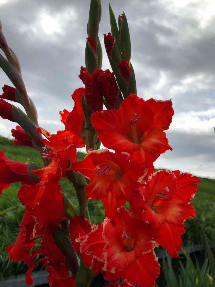 早朝に豪雨で散歩出来ずにいましたが、雨が上がったばかりの空と紅いグラジオラスを撮ってみました☺️