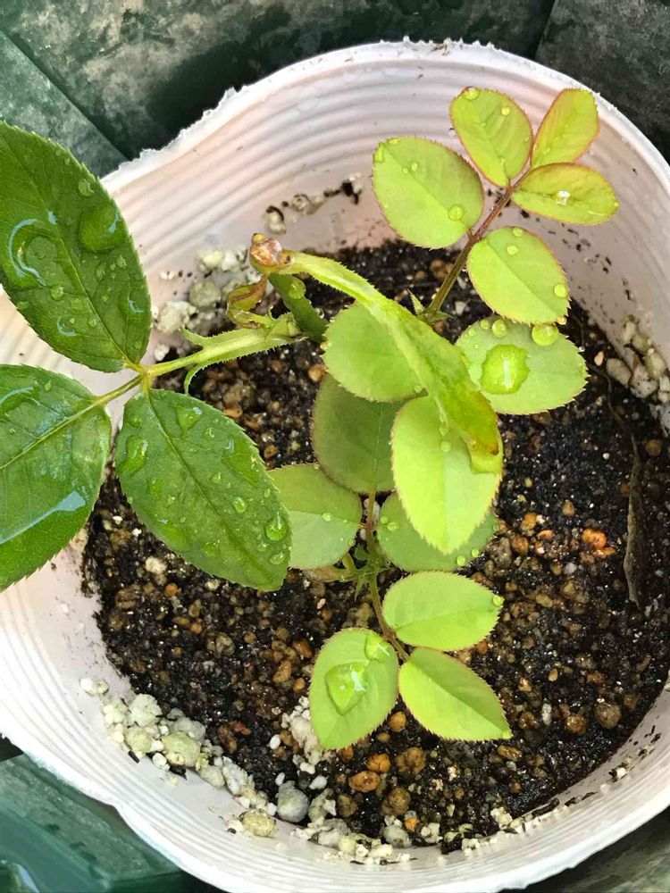 6月中旬くらいにカットした茎で挿し木してみたバラ シャリマー🌱✨