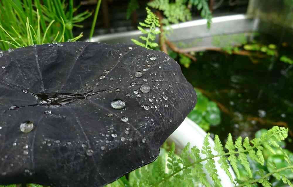 黒葉サトイモに雨粒