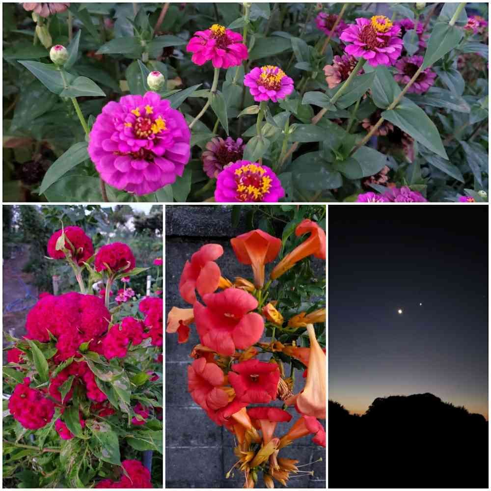 出発は4時30分三日月と明けの明星です。そして夏らしいお花たちです。
