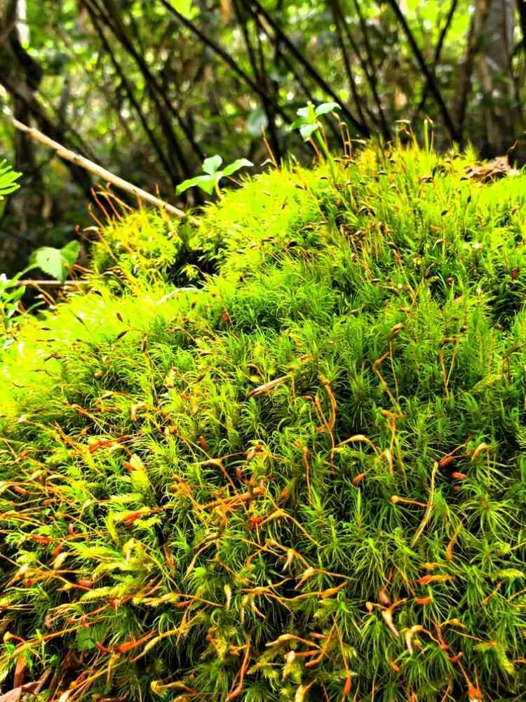 長い樹林帯、歩いてて足が痛いし景色も飽きてたら足元に✴️モフモフのみずみずしいコケさん