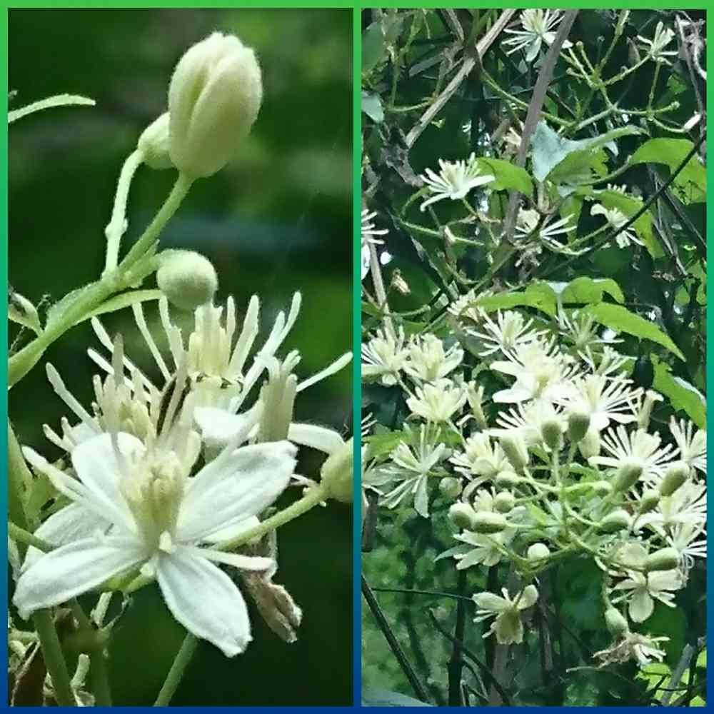 の駐車場の木に絡み付いて咲いていたボタンヅル(牡丹蔓)