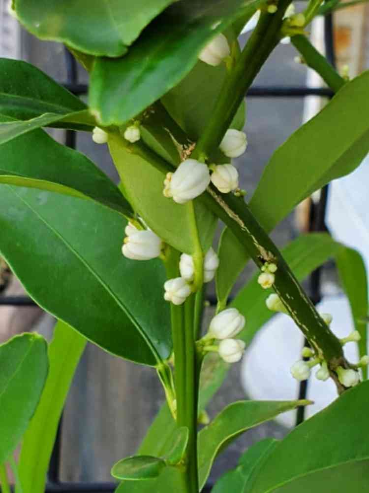 金柑の花2回目。咲いてくれて嬉しいんだけど、こんな暑いのに🔥☀️誰が受粉してくれるのか心配💦