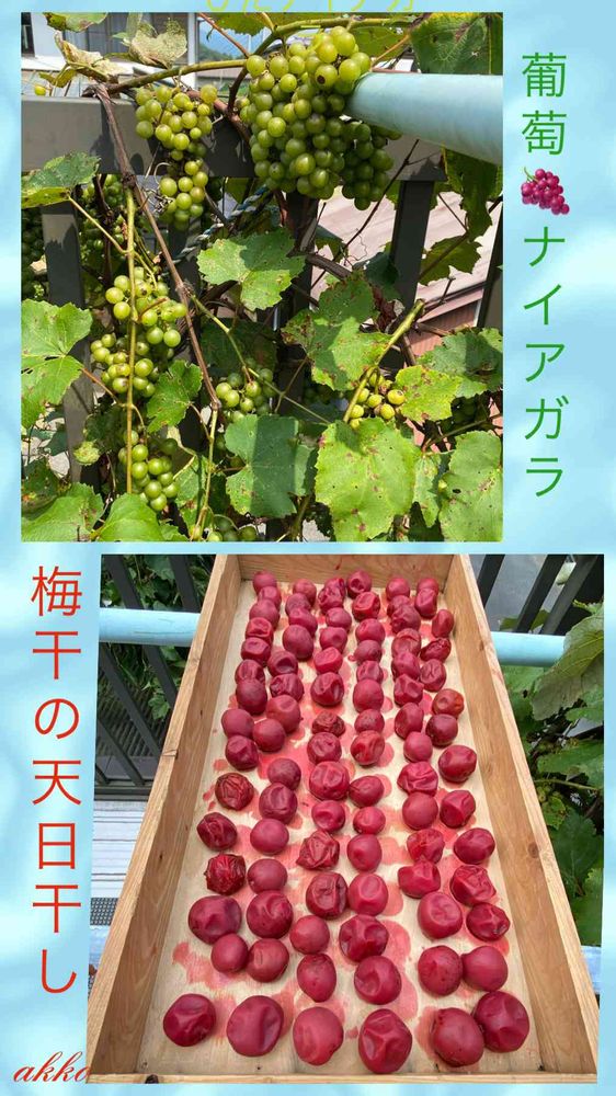 バルコニー/ベランダ,自家製梅干し,葡萄ナイアガラの投稿画像