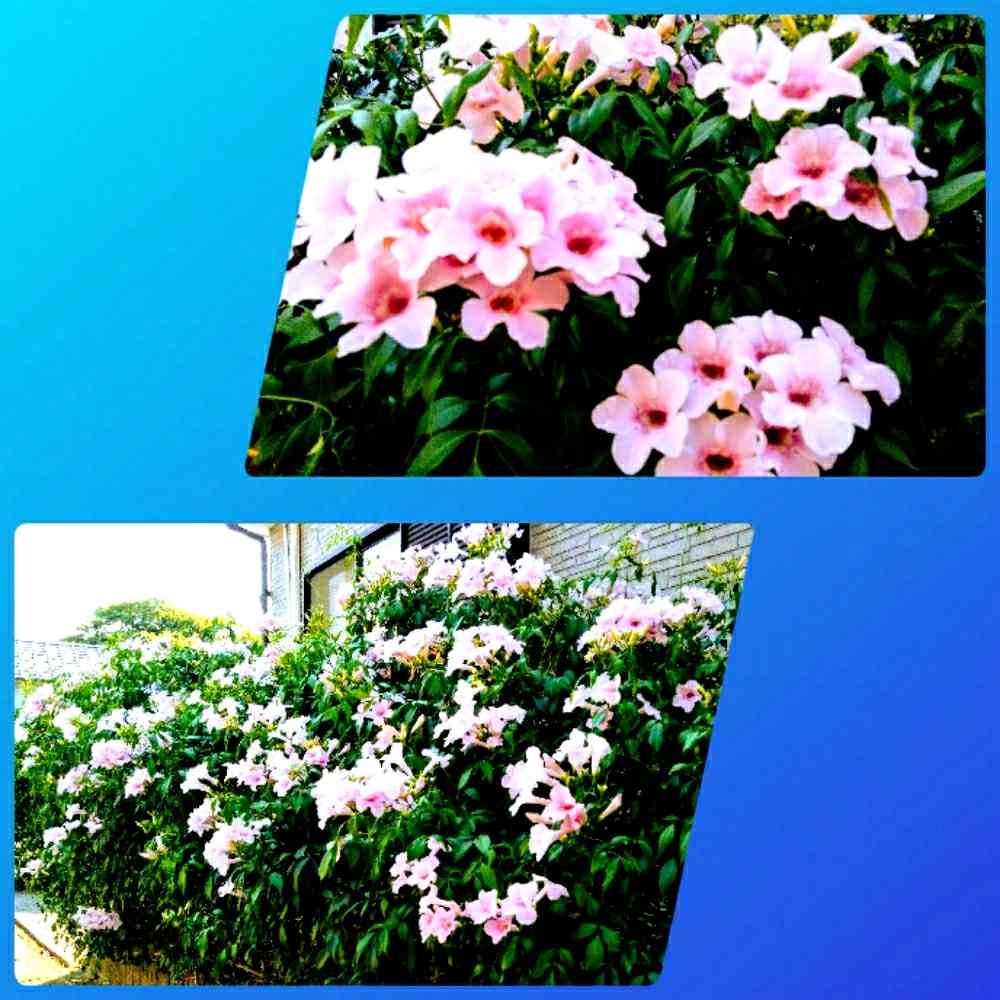 買い物帰りに、通り道のお宅の生垣の、ピンクのお花が綺麗でした。
